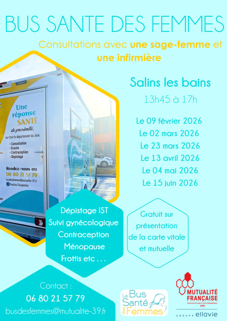 Rendez-vous dans le bus, dans les lieux partenaires, ou via Doctolib “Pauline Charpentier – sage femme”