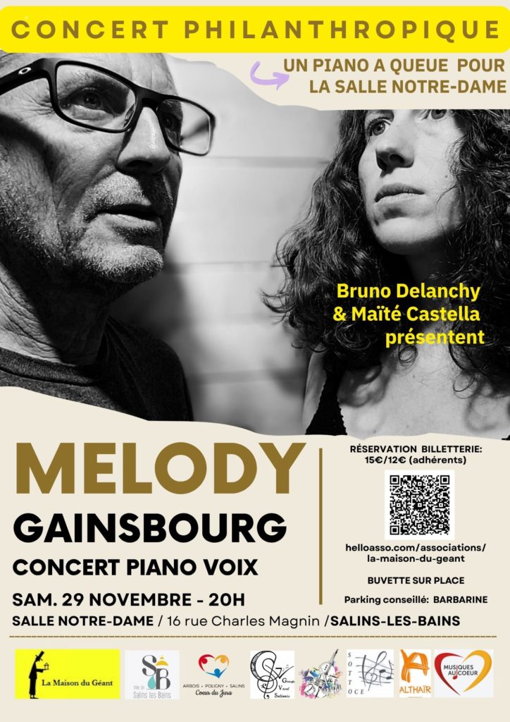 La Maison du Géant porte avec la Mairie, le projet d’acquisition d’un piano à queue pour la salle Notre-Dame, soutenue par le chœur Sotto Voce, l’Association Musicale Salinoise, le Groupe Vocal Salinois, l’association Althaïr, l’école de musique Coeur du Jura et l’association Musiques au Cœur. La collecte sera clôturée fin novembre avec ce concert philanthropique proposé par Bruno Delanchy et Maïté Castella .